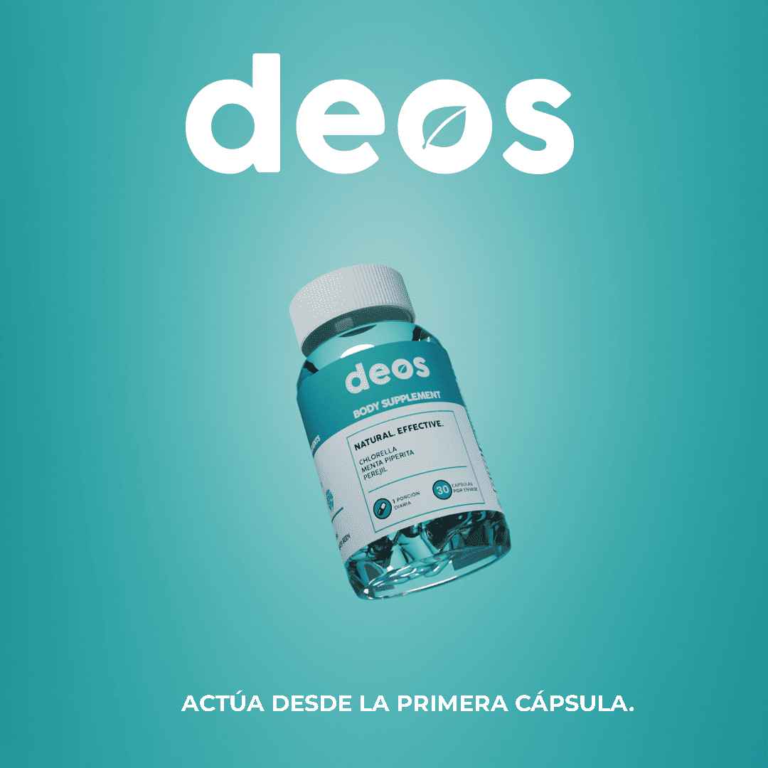 ¿Imaginas sentirte fresco todo el día sin necesidad de volver a aplicar desodorante? Deos es la solución natural para eliminar el mal olor corporal desde adentro. Gracias a su fórmula a base de clorofilina, perejil y menta, estas cápsulas trabajan desde el interior para mantener tu cuerpo libre de olores, sin químicos agresivos ni perfumes artificiales.